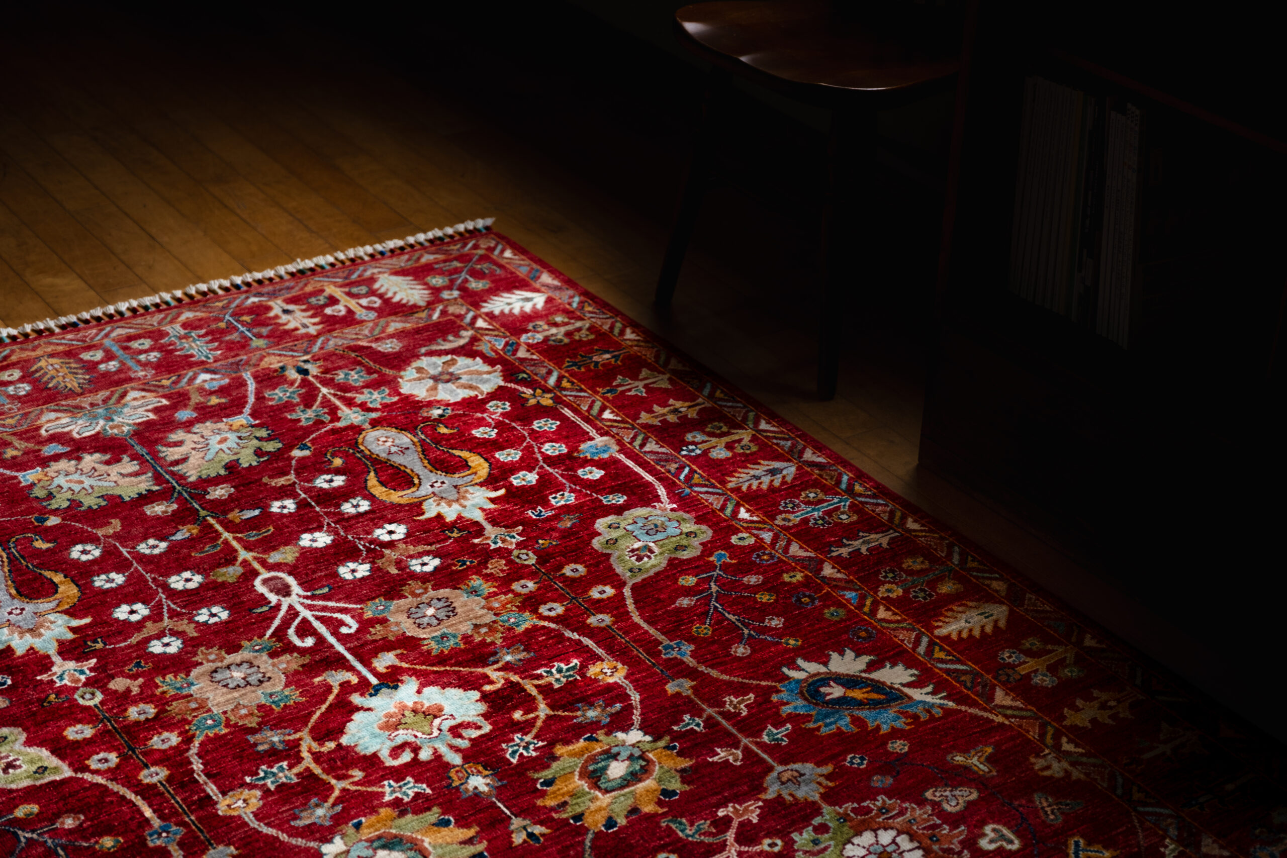 絨毯には、長い歴史と豊かな背景があります。国や部族によって織りや文様はさまざまで、その一枚一枚に物語が込められています。私たちは、そうした絨毯の背景にある物語や文化も大切にしながら、お客様にとって心に残る出会いのお手伝いをしています。丁寧に織り上げられた一枚の絨毯が、空間の印象を大きく変えてくれる――